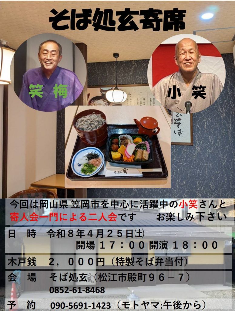 開催日時 令和8年2月20日(金) 開場 13:30 開演 14:00 開催場所 つむぎや(松江市竪 […] -